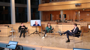 Digitale Talkrunde mit Jasmina Hostert (statt Saskia Esken, SPD), Dr. Anna Christmann (Grüne) und Michael Theurer (FDP).